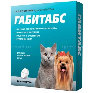 ГАБИТАБС для кошек и собак мелких пород, 50 мг (10 таб) применяют для устранения поведенческих расстройств, купирования повышенной тревожности, в том числе при проведении диагностических исследований, транспортировке и груминге у собак и кошек.