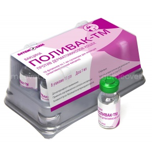 ПОЛИВАК-ТМ - ассоциированная инактивированная вакцина против дерматомикозов животных включает грибы из рода Трихофитон (стригущий лишай) и Микроспорум.